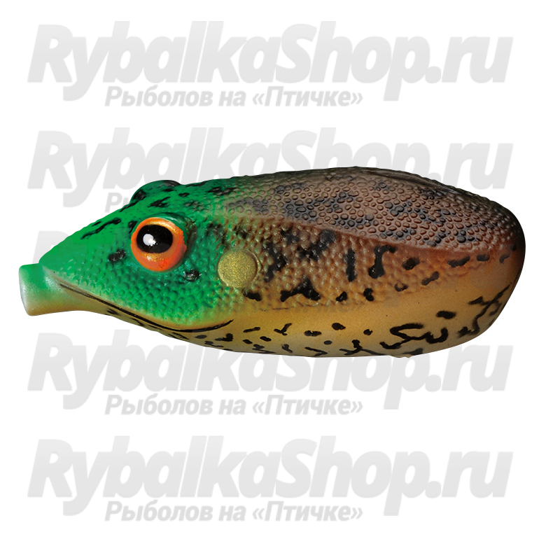 Расцветка лягушат разнообразная, изобилует всякими оттенками, придающими приманке эффективности и агрессивности. Приманка работает в поверхностном слое, не тонет. Крючок вмонтирован таким образом, чтобы придать лягушонку максимальной незацепляемости, что позволяет протаскивать ее по ковру водной растительности.