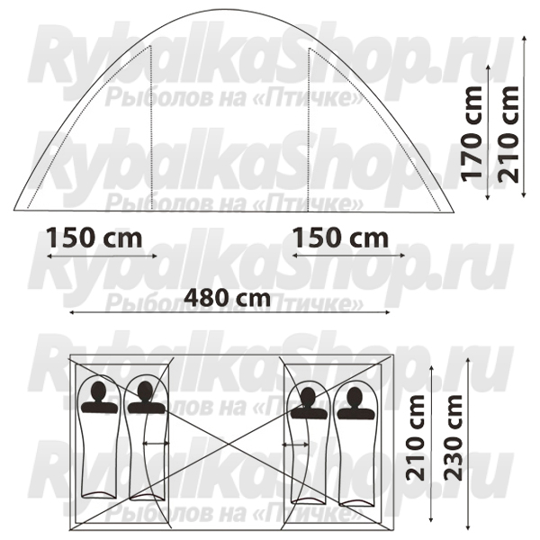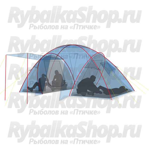 • Ткань палатки защищена от воздействия ультрафиолета, имеет высокую водонепроницаемость, обработана огнеупорной пропиткой;