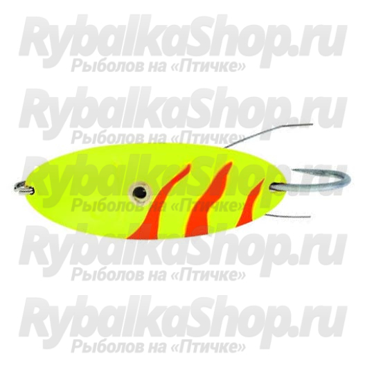 Колеблющаяся блесна овальной формы ориентирована для ловли щуки в водоемах с достаточно сильным и среднем течением, где обычные приманки выдавливает на поверхность.