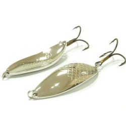 Приманка имеет один, но очень острый и надежный крючок-тройник и допускает проводку задом наперед, при перестановке крючка. Форма блесны типичная, похожа на плотву.