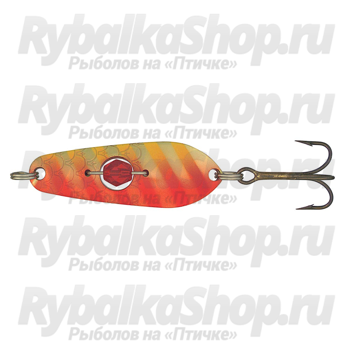 Узкий профиль и толщина блесны дает возможность успешно применять ее в речных условиях. Специальный шарик-бусинка, расположенный в корпусе блесны, переливаясь своими гранями в прозрачной воде, срабатывает, как дополнительный раздражающий фактор для атаки.