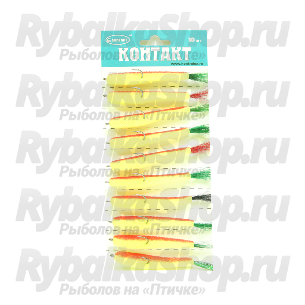 Поролоновые рыбки "Контакт" с хвостом люрекс изготавливаются методом "резки" из плотного и жесткого материала, обеспечивая тем самым долговечность приманки и характерную игру для "резанных" моделей в отличие от плавленного поролона. Приманка качественно склеена и устойчива к механическим повреждениям. Оснащается крючками Eagle Claw и Cannelle. Внутри поролоновой приманки отсутствует «удлинитель», кольцо крючка выходит непосредственно из «головы» рыбки. Ушко крючка независимо от оснастки всегда соосно дужке стандартного «ушастого» груза.
