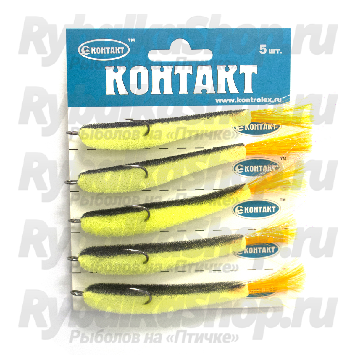 Поролоновые рыбки "Контакт" с хвостом люрекс изготавливаются методом "резки" из плотного и жесткого материала, обеспечивая тем самым долговечность приманки и характерную игру для "резанных" моделей в отличие от плавленного поролона. Приманка качественно склеена и устойчива к механическим повреждениям. Оснащается крючками Eagle Claw и Cannelle. Внутри поролоновой приманки отсутствует «удлинитель», кольцо крючка выходит непосредственно из «головы» рыбки. Ушко крючка независимо от оснастки всегда соосно дужке стандартного «ушастого» груза.