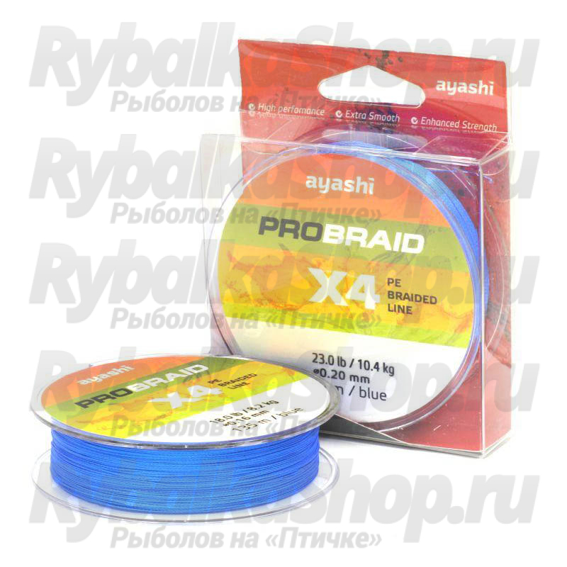 Серия шнуров Pro Braid-X4 от компании Ayashi разрабатывалась при участии ведущих инженеров данной области и именитых рыболовов-спортсменов и заслуживает внимание благодаря своему высокому качеству, а также весьма привлекательной цене. Pro Braid-X4 состоит из четырех нитей гладкого и очень прочного полиэтилена. Серия отличается износостойкостью и долговечностью. Шнур имеет очень плотное плетение, износоустойчив и хорошо противостоит трению о ракушечник или камни, что делает его пригодным для ловли в трудных условиях. Плетенка практически лишена эффекта памяти. Серия выпускается в различных цветовых вариациях. Хорошо подходит для джига.