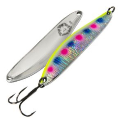 Удлиненная форма и большая скорость погружения сделали эту блесну идеальной для больших глубин. Изготовлена способом литья под давлением с армированием из нержавеющей проволоки. Использование лепестка придает блесне большую привлекательность увеличивает количество бликов , а также создает дополнительную вибрацию и звук. Центр тяжести приманки смещен к хвосту , что позволяет совершать дальние и точные броски..Имеет граненое тело сложной формы все грани хорошо отполированы.