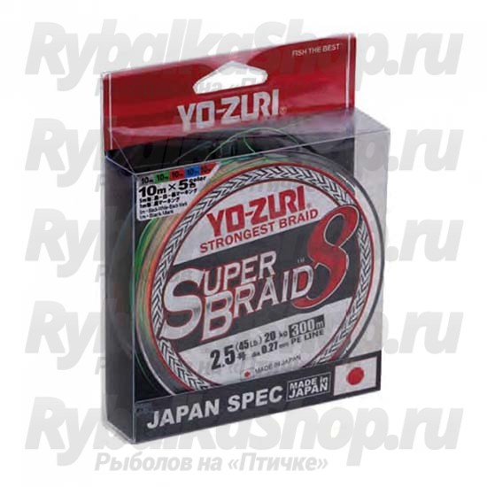 Шнур PE Yo-Zuri Super BR8 5C 300m - качественная восьмижильная плетёная нить от  Yo-Zuri. 5 color - подкрашенный каждые 10 метров в контрасный цвет ( мультиколор ) для визуального понимания приближения приманки и дальности как заброса, так и собственно поклёвки и места ловли.