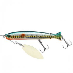 Ayro Spin от фирмы Sprut - очень необычная и весьма уловистая приманка. Она обладает формой тела составного минноу и, подобно спиннербейту, оснащена лепестком на проволочной раме. Приманка не имеет лопасти. Хвостовая часть приманки имеет шарнирное соединение с телом и создает во время проводки соблазнительные низкочастотные движения.