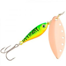 Ayro Spin от фирмы Sprut - очень необычная и весьма уловистая приманка. Она обладает формой тела составного минноу и, подобно спиннербейту, оснащена лепестком на проволочной раме. Приманка не имеет лопасти. Хвостовая часть приманки имеет шарнирное соединение с телом и создает во время проводки соблазнительные низкочастотные движения.
