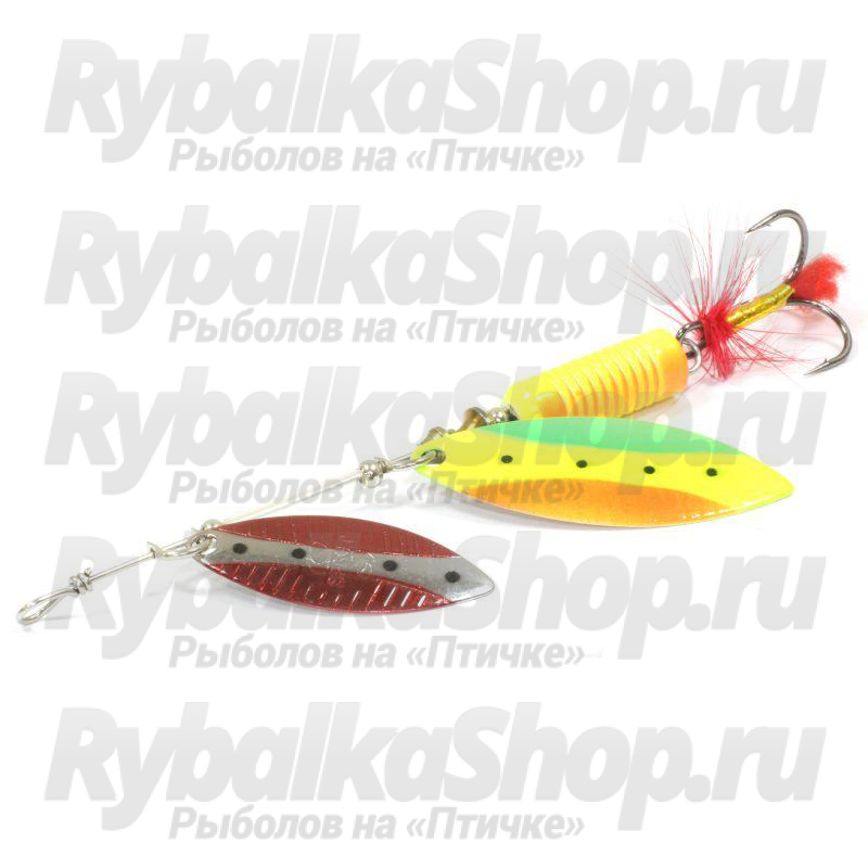 Блесны из серии Oso Spinner 3 от фирмы Sprut имеют на своей оси два различных по размеру лепестка. Эта приманка обладает максимально привлекательным эффектом благодаря визуальному и гидроакустическому воздействию. Одновременное использование двух остроконечных лепестков делает приманку чрезвычайно уловистой. Лепестки расположены на достаточном расстоянии и не мешают друг другу во время вращения. Тандемная блесна-вертушка Oso Spinner хорошо подойдет для ловли на течении. Благодаря приличному весу, блесна имеет хорошие полетные данные. С ее помощью можно облавливать достаточно глубокие места водоемов. Sprut Oso Spinner хорошо подходит для ловли большинства хищников, особенно щуки, и позволяет рассчитывать на поимку крупного трофея.