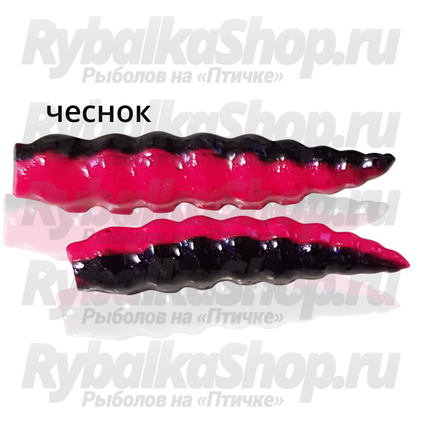 Мягкая приманка MF_pro Личинка 3.5 см - 10шт. черный-розовый (двухцветка) чеснок