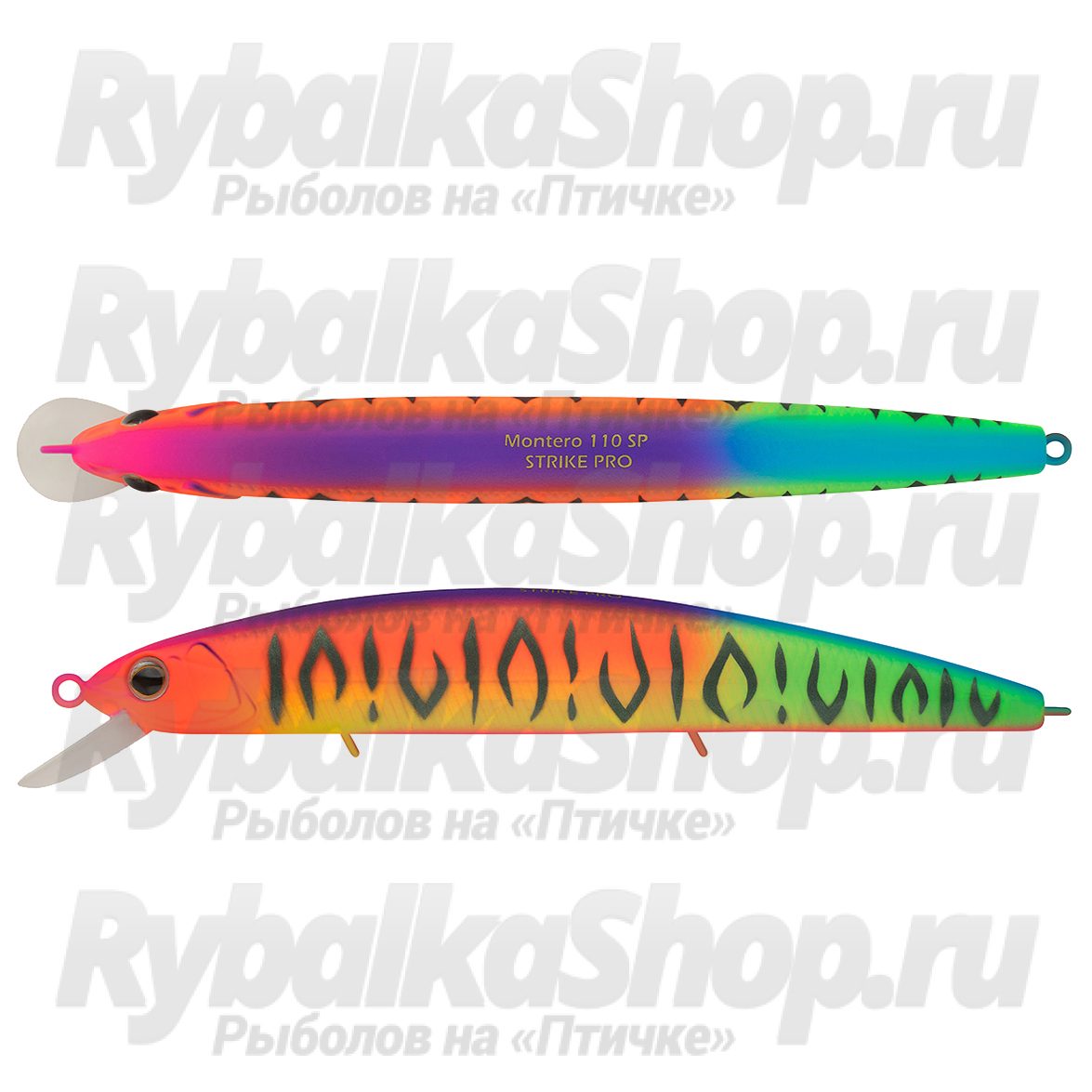 Приманкой высшего класса можно смело назвать воблер типа minnow от компании Strike Pro Montero 110SP. Все в этой приманке на самом высоком уровне: рабочие характеристики, уловистость, покраска, качественные фурнитура и материалы. Воблер будет актуален при облове мелководья и при ловле пассивной хищной рыбы в холодной воде. Внутри приманки расположены три шарика, которые положительно влияют на дальность заброса. На равномерной проводке Montero начинает играть уже на небольших скоростях и обладает отличным роллингом, сверкает оттенками брусковатого тела. При твичинговой проводке приманка очень отзывчивая и позволяет выполнять различные вариации проводок с большим диапазоном отклонений воблера от направления рывка.