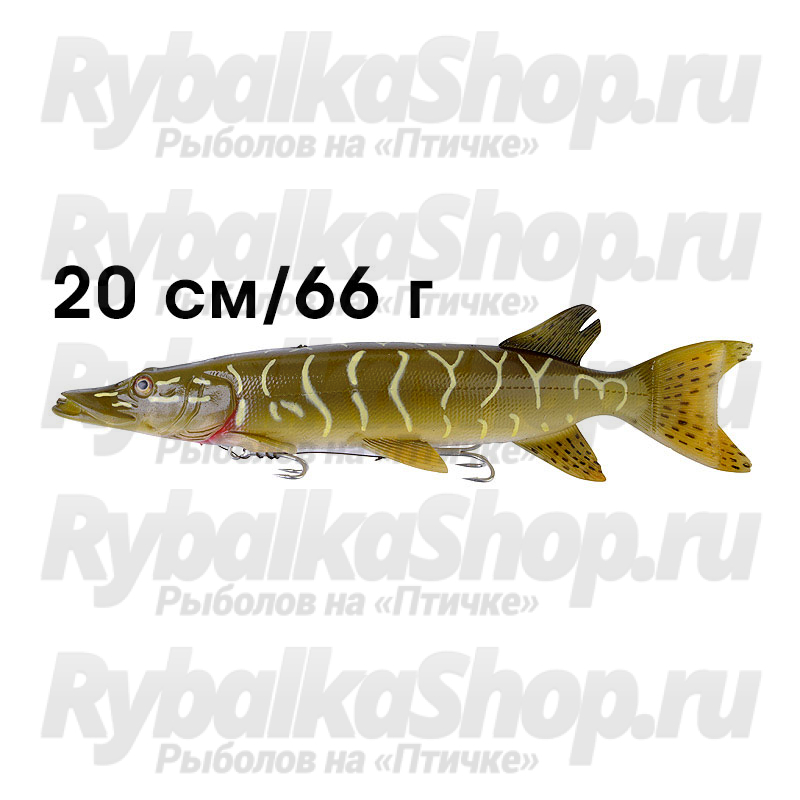 Приманки Savage Gear 3D Line Thru Pike производятся в двух размерах: 20 см (весом 66 гр.) и 30 см (весом 210 гр). Комплектуются она поштучно в удобные упаковки.