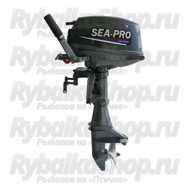 Sea-Pro T 9.9S (T 9.8S) - двухтактный двухцилиндровый мотор мощностью 9,9 л.с. с румпельным управлением, ручным переводом в мелководный режим, внешним бензобаком на 24 литра, рассчитанный на стандартную высоту транца 381 мм.