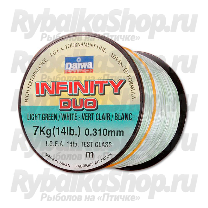 Монофильная леска Daiwa Infinity Duo Green White популярна среди карпятников. Она имеет международную классификацию Igfa, поэтому может участвовать в международных соревнованиях. Ее используют уже миллионы людей по всему земному шару. Она отлично сочетает в себе невероятную прочность, надежность, удобство в использовании, износостойкость, эффективность и доступную цену.