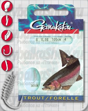 Крючок Gamakatsu BKD-3610N Trout Spiral c поводком 100cm