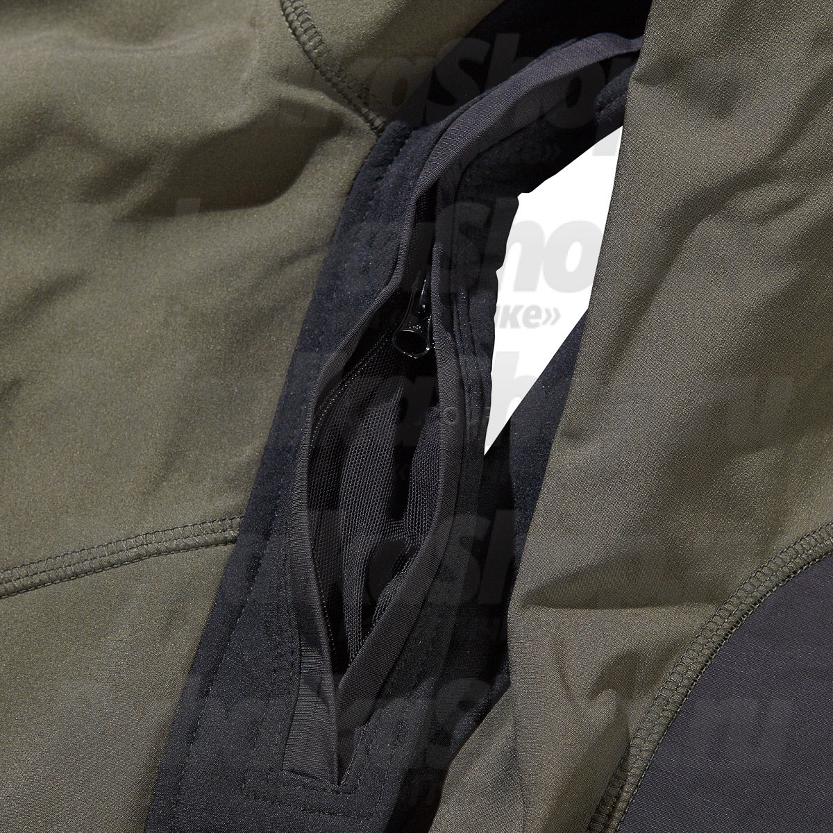 Сшита из сверхлегкого, эластичного материала софтшелл для комфортного передвижения. Интегрированный капюшон, под мышками вентиляция на молнии и сетка-декор.