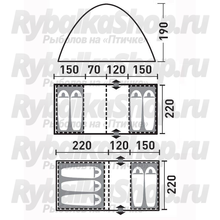 Палатка Greenell "Арди" имеет классическую конструкцию полубоченка. Прозрачные окна. Антикомариная система (юбка и сетка в тамбуре). Различные варианты конфигурации . Два входа, большой тамбур. Проточная вентиляция. Возможна установка тента без внутренних палаток. В комплекте колышки из алюминия.