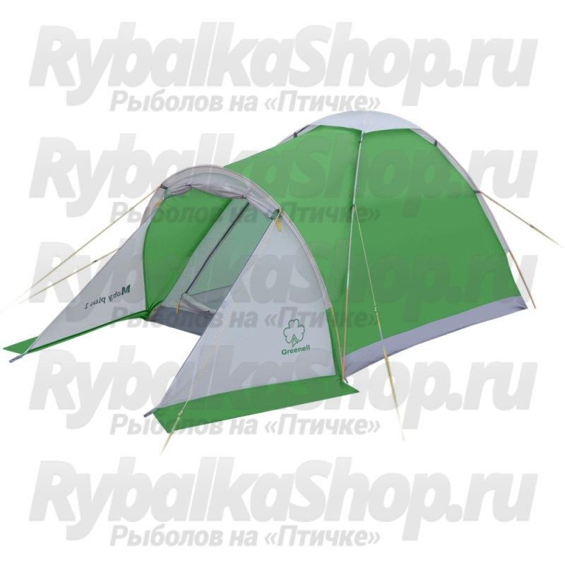 Greenell Моби 2 плюс - простая дешевая однослойная туристическая палатка. Вес палатки 2 кг, потому что использованы тонкие легкие ткани и фибергласс. Светлая расцветка отражает солнечные лучи и палатка меньше нагревается. Один вход и один тамбур на отдельной дуге. Полог скатывается в рулончик и крепится сверху. Дверь в палатку двухслойная. Можно отстегнуть внешний слой и оставить слой москитки. Вентиляционный клапан один, находится на самом верху. Прикрыт он особой накладкой.