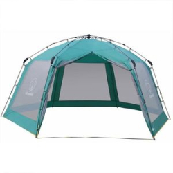 Кемпинговая палатка четырехместная с большим тамбуром на два входа. Одна из ведущих позиций интернет магазина палаток. Имеет большой тамбур и одно большое спальное отделение со съемной перегородкой. Прозрачные окна со шторкой. Над входом большой навес. Возможна отдельная установка тента.