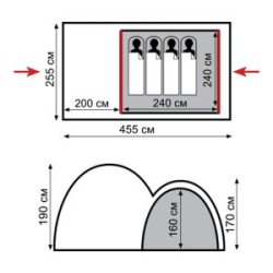 - Ткань тента: Poly Taffeta 190T PU 4 000 мм