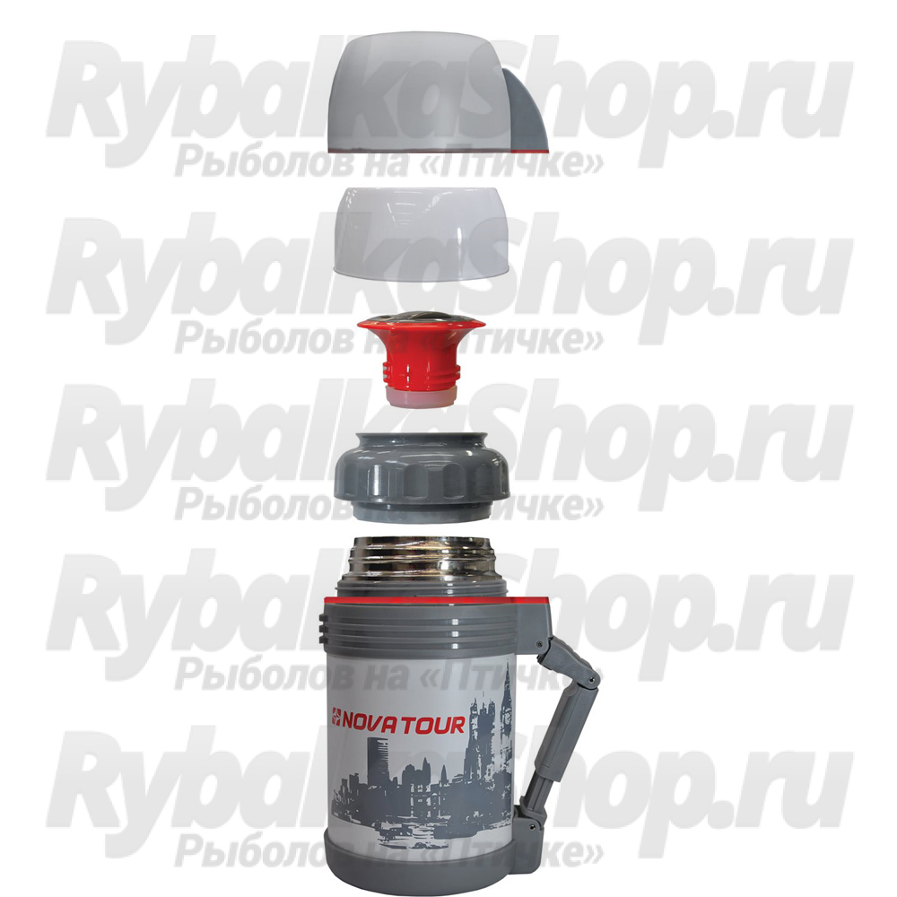 Универсальный термос Nova Tour "Биг Бэн" для хранения продуктов и напитков. Пластиковая ручка, съемный регулируемый ремешок, пробка с поворотным клапаном, дополнительная пластиковая миска, которую можно использовать для первых и вторых блюд.