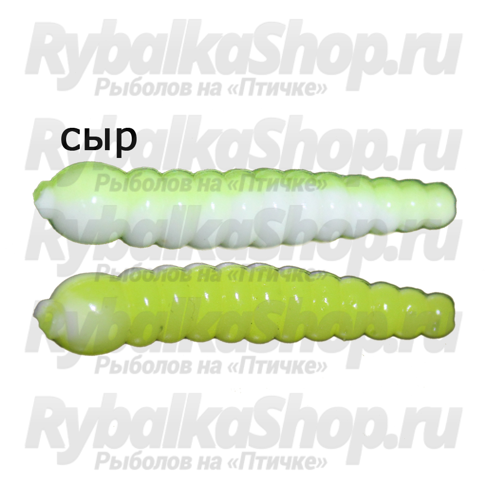 Мягкая приманка MicroFishing Личинка 3.5 см - 10шт. Белый-шартрез (двухцветка) Сыр