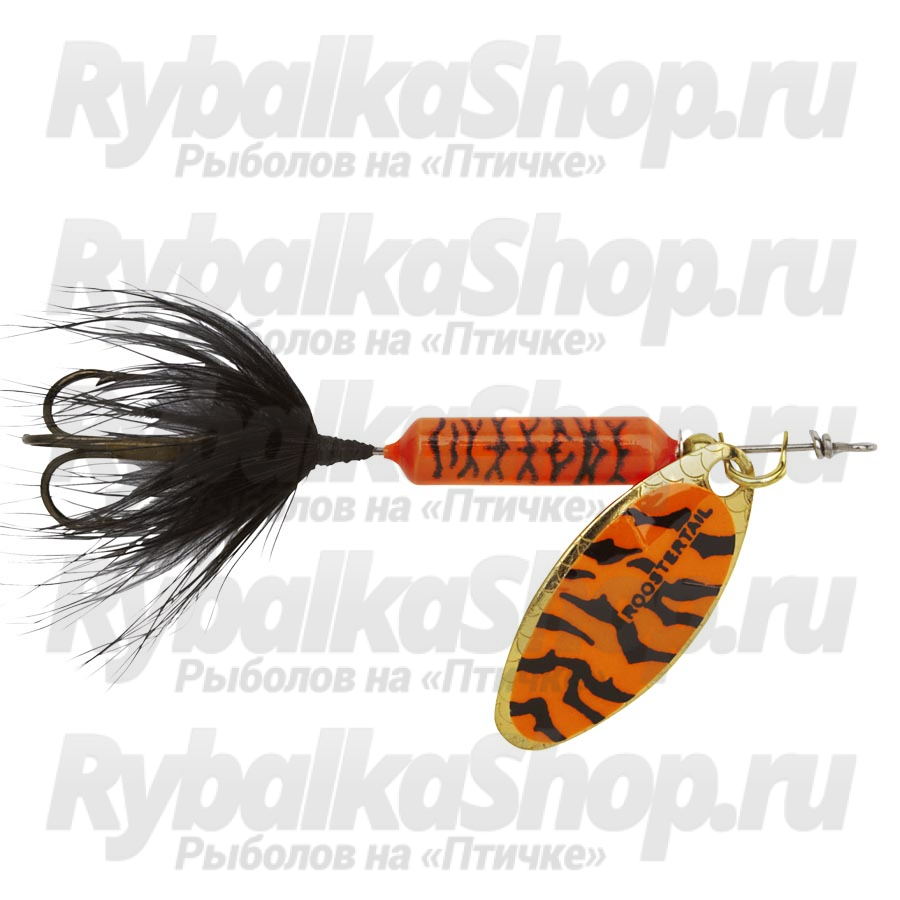 Yakima Bait Rooster Tail – уловистая вращающаяся блесна с «опушкой» тройника, исполненная в легком варианте. Благодаря уникальной конструкции, приманка отлично ловит хищника в поверхностном слое заросших водоемов, когда до гряды водной растительности остается всего 30-50 см воды. Игра приманки привлекательна, в первую очередь, для окуня и щуки. Отличается хорошими характеристиками заброса легким спиннингом.