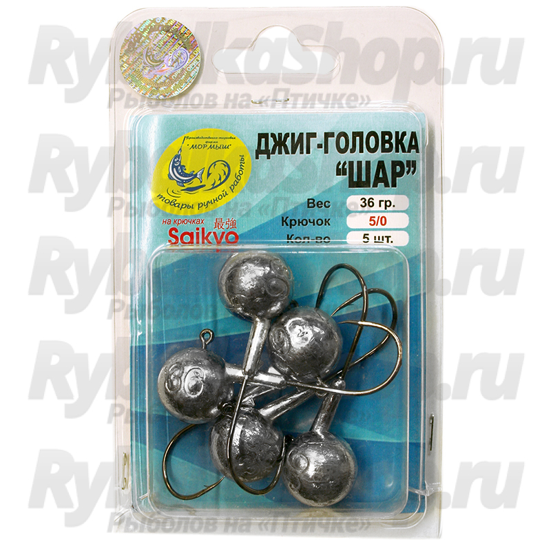 Форма головки – шар, это лучший вариант как для работы приманки, так и для результативности всей ловли, который идеально подходит под все типы силиконовых приманок. Для литья джиг-головки использован крючок №6/0, вес свинцовой части - от 10 до 44 грамм.