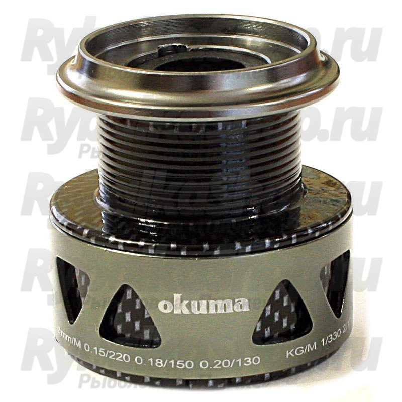 Гибридная шпуля из графита с усилением юбки, алюминиевым кольцом и алюминиевым бортиком. Тело шпули состоит из трех деталей, в подшпульном узле присутствуют три шарикоподшипника.