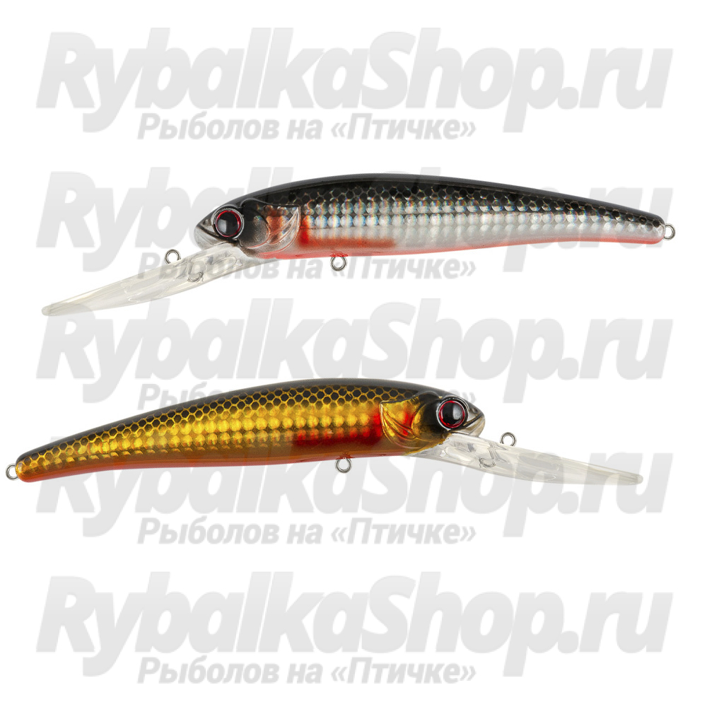 При отпуске шнура ( 0.2 мм ) около 40 -метров и скорости катера 3.5 — 4.0 км / час воблер заглубляется глубже 6 метров, показывая при этом малоамплитудную высокочастотную игру,характерную для приманок хорошо работающих по судаку. Наилучших результатов воблер добивается,если во время проводки он будет время от времени касаться дна,выбивая муть со дна. Не надо бояться зацепов при этом. Широкая и прочная лопата надежно защитит крючки воблера. Цветовые решения ,позволят Вам без труда подобрать нужную модель под любые условия ловли.
