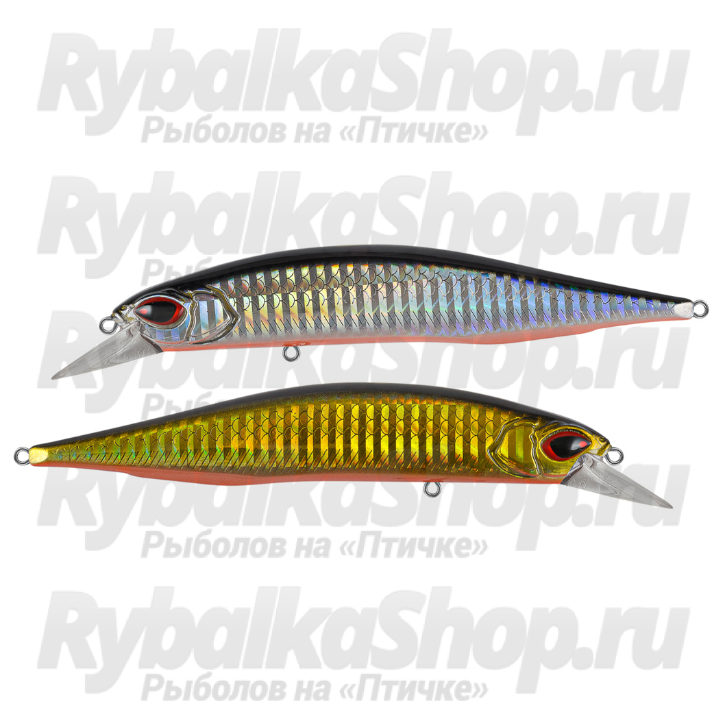 Особенности дизайна: В оформлении поверхности воблера использованы два варианта фактуры: спина гладкая, верхняя часть боков выполнена насечками в виде чешуек, а ниже боковой линии – в виде косых насечек. Головная часть – имитация головы настоящей рыбки, с жаберными крышками и очень крупными вытянутыми 3D глазами. Общий стиль приманки весьма реалистичный. Воблер вооружен двумя тройниками OWNER и силовыми заводными кольцами. Имеется система баланса и магнитная система дальнего заброса. ЛКП соответствует лучшим образцам современного воблеростроения.