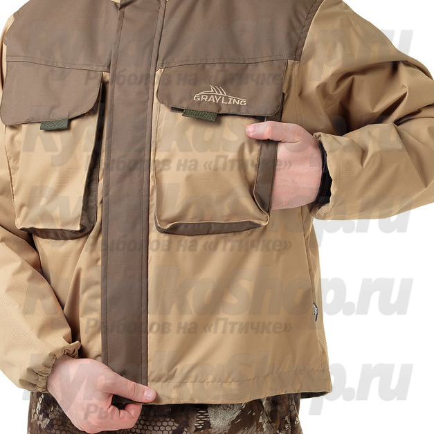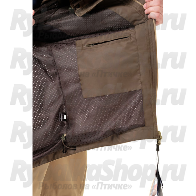 Укороченная рыболовная куртка с большими объемными карманами на груди. Анатомический крой, центральная молния, ветрозащитная планка, удобные утяжки капюшона. Мембранная ткань делает куртку непромокаемой, при этом хорошо отводящей влагу. На спине имеется петля для крепления подсачека.