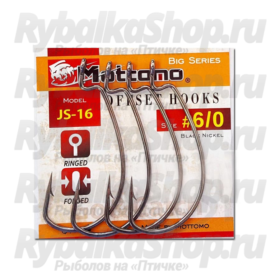 Главное достоинство офсетных крючков Mottomo JS-16 - большое колечко крепления, что удобно в монтаже с «обычными» заводными кольцами. При том, что такие характеристики, как прочность крючка, острота и проникающая способность жала - очень высокого уровня. Глубокий поддев особой формы, минимизирует сходы рыбы на вываживании.