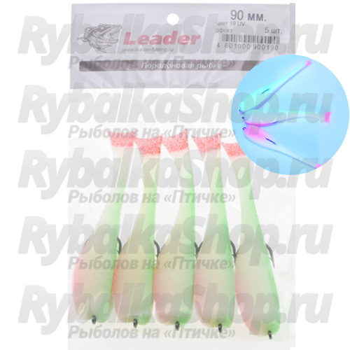 Рыбка поролоновая Leader оснащенная на офсетном крючке 90 мм. Цвет №19 UV