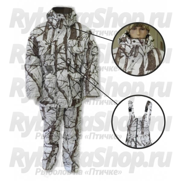 Ксотюм Remington модели RM1080-160 состоит из высокого полукомбинезона, куртки с капюшоном и внутренней желетки, которую при желании можно отстегнуть и носить отдельно. Куртака костюма Remington модели RM1080-160 оснащена копюшоном с двухуровневой регулировкой, теплыми карманами для мобильного телефона, и фиксаторами в области талии, стягивающими низ куртки.