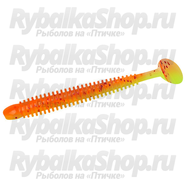 Прогонистый виброхвост-червь  очень популярной формы. Тело максимально эластичное, легкая хвостовая лопатка приходит в движение от едва уловимых потяжек удилищем. Отлично сочетается с офсетным крючком, не препятствуя надежной подсечке.  Многочисленные ребрышки на тельце создают привлекающий рыбу гидроакустический эффек­­­­т. Очень хорошо работает в стоячей воде, на медленном и среднем течении. Допускает оснащение очень легкими грузилами, а также отлично ловит в легкой прибрежной и травяной ловле вообще без огрузки. Вызывает интерес не только у классических хищников наших вод, но и регулярно приносит поимки крупной мирной рыбы – леща, сазана. Представлена в размере 4 дюйма (10 см.)