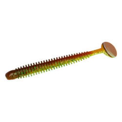 Прогонистый виброхвост-червь  очень популярной формы. Тело максимально эластичное, легкая хвостовая лопатка приходит в движение от едва уловимых потяжек удилищем. Отлично сочетается с офсетным крючком, не препятствуя надежной подсечке.  Многочисленные ребрышки на тельце создают привлекающий рыбу гидроакустический эффек­­­­т. Очень хорошо работает в стоячей воде, на медленном и среднем течении. Допускает оснащение очень легкими грузилами, а также отлично ловит в легкой прибрежной и травяной ловле вообще без огрузки. Вызывает интерес не только у классических хищников наших вод, но и регулярно приносит поимки крупной мирной рыбы – леща, сазана. Представлена в размере 4 дюйма (10 см.)