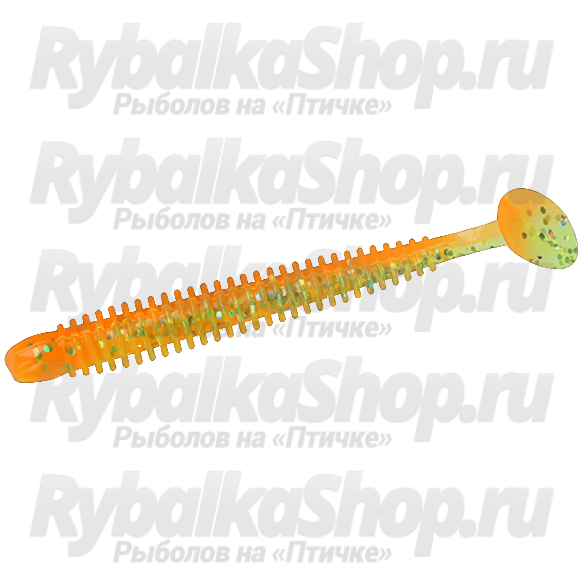 Прогонистый виброхвост-червь  очень популярной формы. Тело максимально эластичное, легкая хвостовая лопатка приходит в движение от едва уловимых потяжек удилищем. Отлично сочетается с офсетным крючком, не препятствуя надежной подсечке.  Многочисленные ребрышки на тельце создают привлекающий рыбу гидроакустический эффек­­­­т. Очень хорошо работает в стоячей воде, на медленном и среднем течении. Допускает оснащение очень легкими грузилами, а также отлично ловит в легкой прибрежной и травяной ловле вообще без огрузки. Вызывает интерес не только у классических хищников наших вод, но и регулярно приносит поимки крупной мирной рыбы – леща, сазана. Представлена в размере 4 дюйма (10 см.)