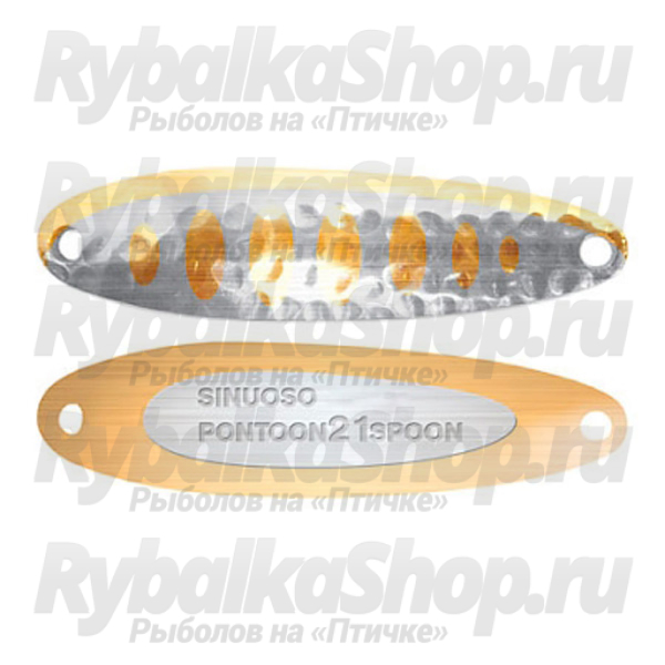 Pontoon21 Sinuoso Spoon - узкотелые колеблющиеся блесна с изогнутым профилем в хвостовой части с двусторонним рисунком и рифленой поверхностью. Внешняя сторона приманки, выполненная в виде рельефной поверхности с нанесенным на нее рисунком, способствует дополнительному привлечению хищника.