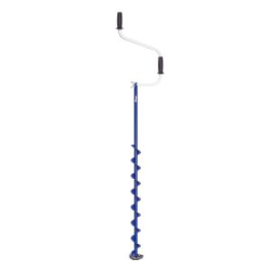 Отличие двуручных ледобуров от классических – верхняя и нижняя рукоятки ледобура смещены относительно оси ледобура. Такое расположение рукояток позволяет вращать ледобур одновременно двумя руками, тем самым, увеличивая скорость бурения лунок во льду. Кроме того, существенно уменьшаются габариты ледобура в транспортном положении. По всем остальным характеристикам двуручные ледобуры полностью соответствуют классическим.