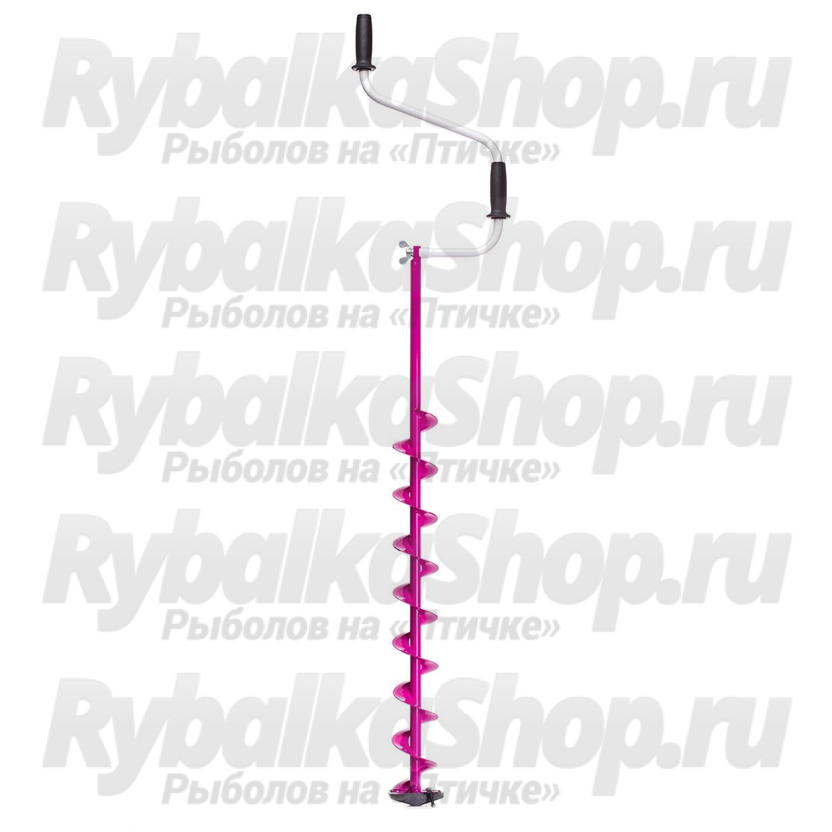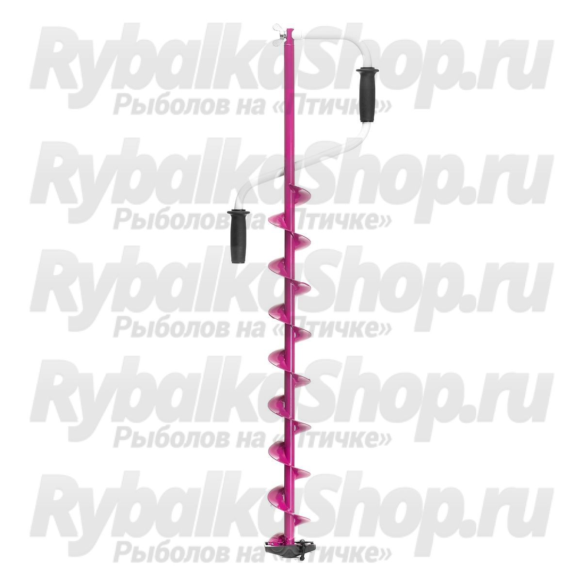 Отличие двуручных ледобуров от классических – верхняя и нижняя рукоятки ледобура смещены относительно оси ледобура. Такое расположение рукояток позволяет вращать ледобур одновременно двумя руками, тем самым, увеличивая скорость бурения лунок во льду. Кроме того, существенно уменьшаются габариты ледобура в транспортном положении. По всем остальным характеристикам двуручные ледобуры полностью соответствуют классическим.