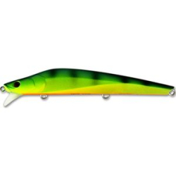 Особенности дизайна: ELEPHANT 130F имеет две, разделенные выраженной боковой линией, рельефные фактуры поверхности. Верхняя часть выполнена в виде косых насечек , нижняя (вплоть до брюшка) в виде косых насечек. Головная часть приманки имитирует жаберные крышки. Объемные 3D глаза органично дополняют внешний вид приманки. Заглубляющая лопасть приманки составляет единое целое с корпусом, и выполнена, как скос головной части с дополнительной выемкой. ELEPHANT 130F имеет систему дальнего заброса, которая стабилизирует приманку в полете, что очень важно для крупных минноу, склонных к кувырканию во время заброса. В наличие система баланса. Приманка оснащена двумя крупными тройниками Cultiva и силовыми заводными кольцами. Качество лако-красочного покрытия соответствует всем современным требованиям.
