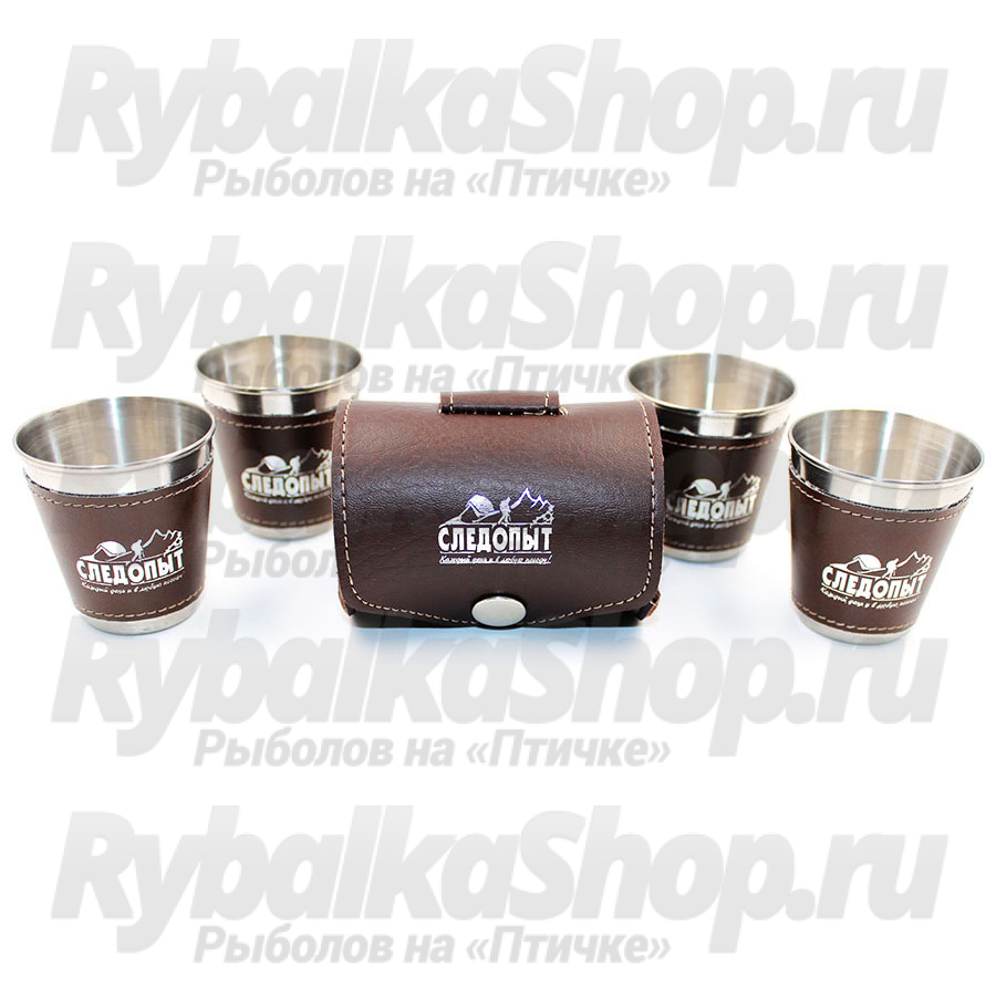 Рюмки «Следопыт» в кожаной тубе имеют удобную для захвата конусообразную форму, устойчивы к механическим повреждениям. Для удобства хранения и транспортировки предусмотрен тубус из искусственной кожи.
