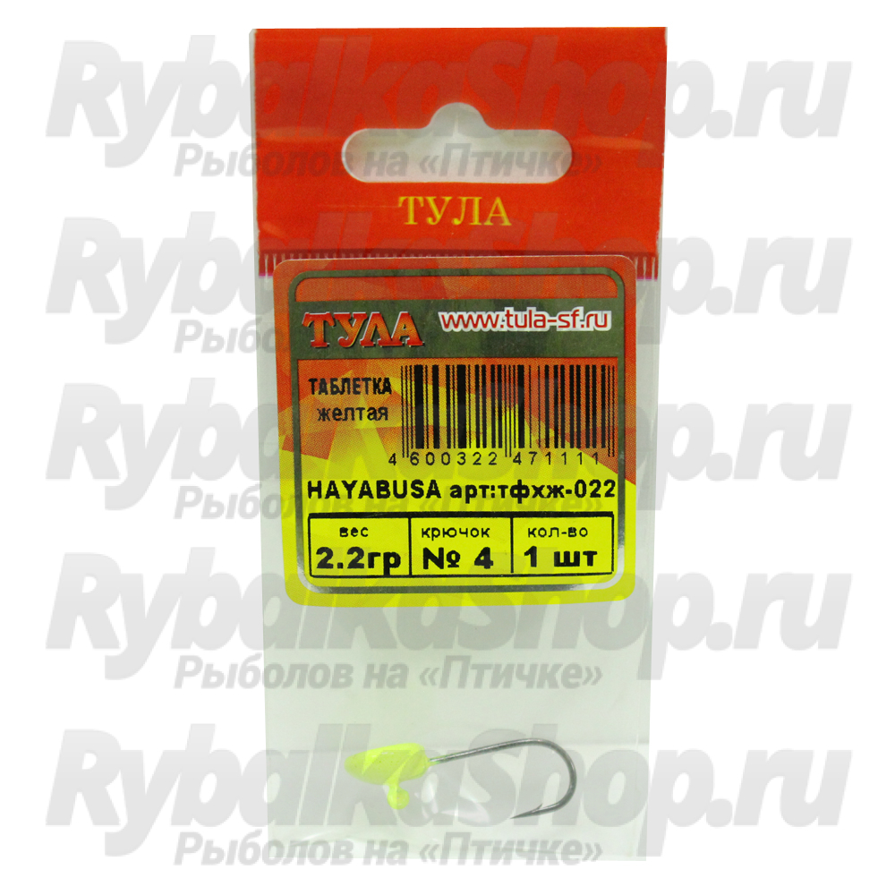 Тула Джиг-таблетка форелевая, крючок Hayabusa № 4 желтый , 2,2г