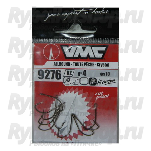 Еще одним вариантом одинарных крючков от французской компании VMC является серия 9276. Крючки имеют смещенный к жалу острый загиб типа Crystal, благодаря чему они являются прекрасным выбором для донной и поплавочной ловли. У представителей серии короткое цевье. Главной отличительной чертой данной линейки является их незаметность. У серии VMC 9276 три варианта покрытия: никель, бронза и золото. Крючки очень зацепистые в связи со своей особой формой и применением химической заточки. Материал изготовления - высокоуглеродистая сталь.