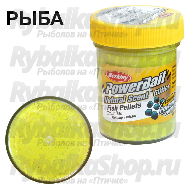 Паста форелевая Berkley Powerbait Dough Natural Scent FISH PELLET - SUNSHINE YELLOW, 1239481