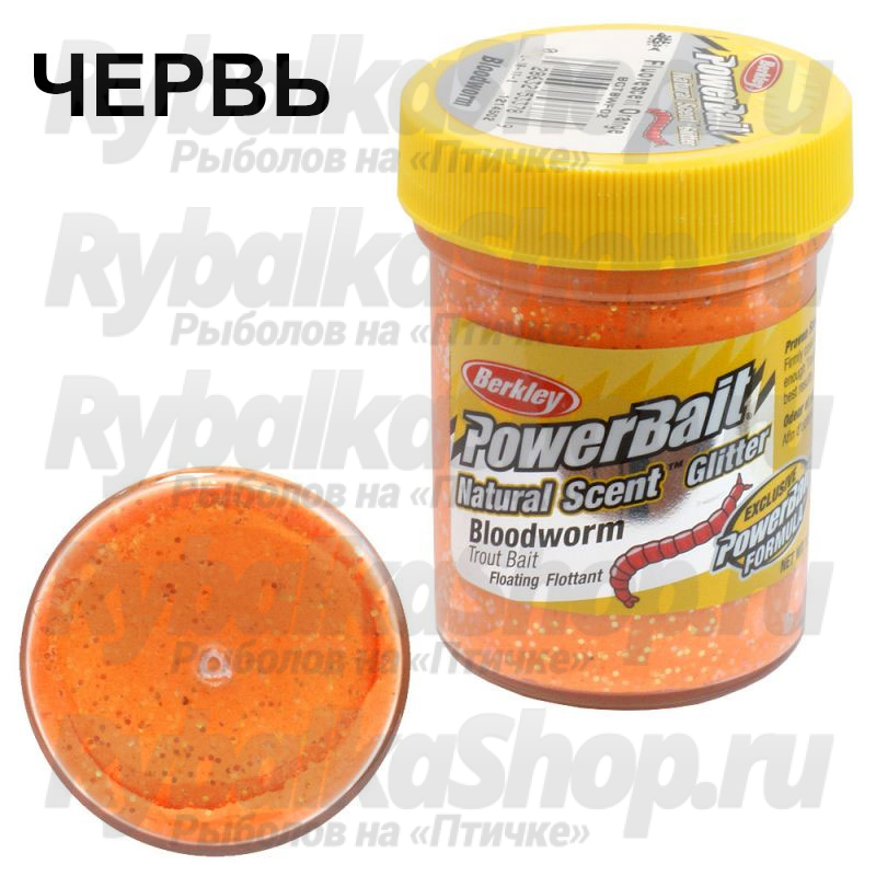 Паста форелевая Berkley Powerbait Dough Natural Scent BLOODWORM - FLUO ORANGE