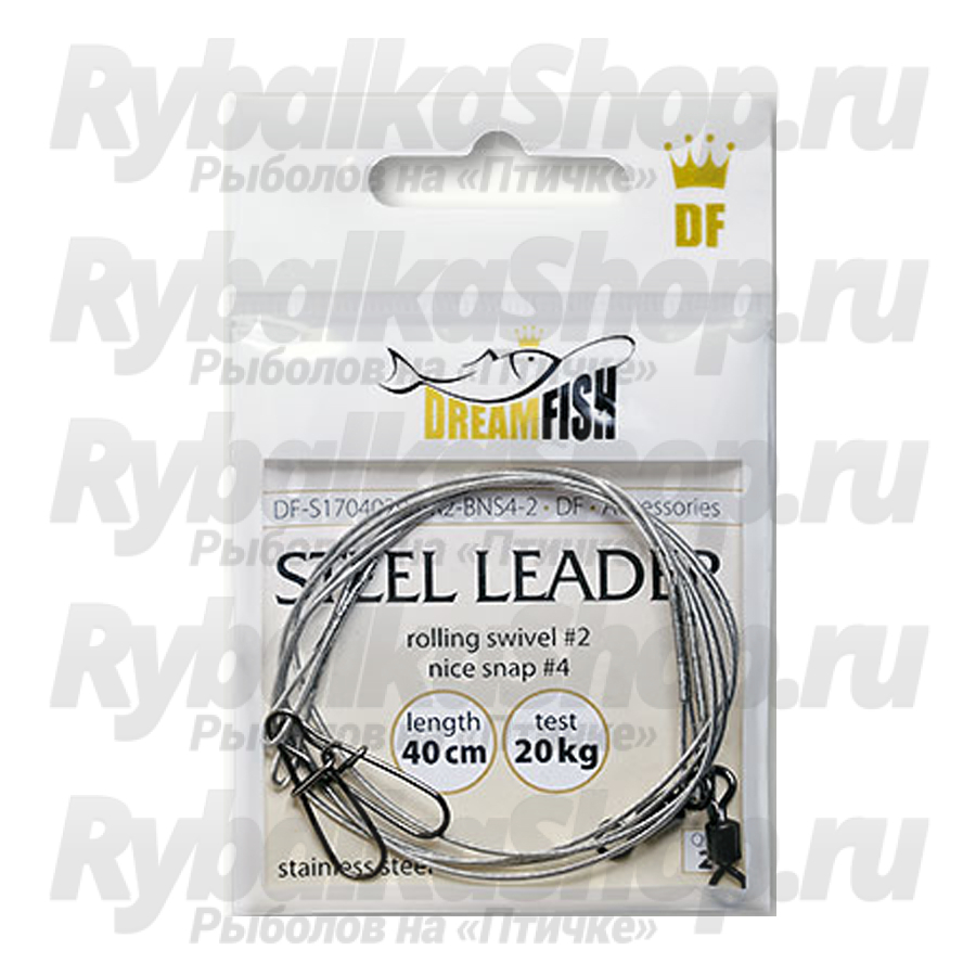 Поводки DreamFish Steel Leader BRN. Поводки из многожильной стальной проволоки 1х7 в стальной пластиковой оплетке, застежка - Nice snap, вертлюжок - Rolling swivel