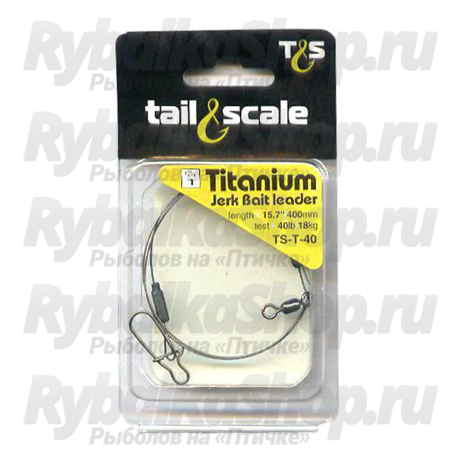 Поводок Tail&Scale Titanium. В названии поводка используется слово титан, и мы можем предположить, что поводок титановый, но это не так. Титан в чистом виде, для массового производства поводков не используется. Применяют так называемый титановый сплав, что это за сплав и что он из себя представляет пишут не многие производители. Поводок Tail & Scale Titanium тоже изготовлен из титанового сплава, но его там видимо не много, по этому поводок довольно легко деформируется и довольно трудно выпрямляется. Если вы привыкли менять поводки довольно часто или ловите не много, то Tail & Scale Titanium вам вполне подойдет.