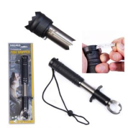 Захват челюстной – он же липгрип (lipgrip). Специальное приспособление для вытаскивания из воды щуки, схватившей крупную приманку, оснащенной тройниками. Он также полезен для приверженцев C&R, так как минимально травмирует рыбу. Принцип действия основан на плотном смыкании металлических дужек за нижнюю челюсть рыбы. Кость нижней челюсти достаточно прочна, так что рыба не сорвется и не травмирует ее. Немного хлопотное заведение устройства в рот бьющейся рыбы с лихвой окупается тем, что вы не пачкаете руки, не травмируете рыбу и не выпутываете тройники из сетки подсачека.